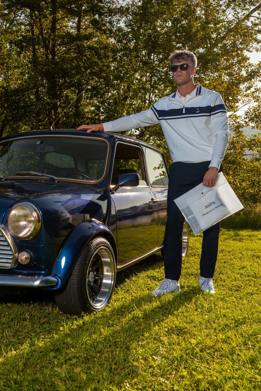 En norskdesignet golfgenser som kombinerer stil og funksjon. Det marineblå designet med hvite striper gir et tidløst uttrykk, og passer like godt på golfbanen som til hverdagsbruk.